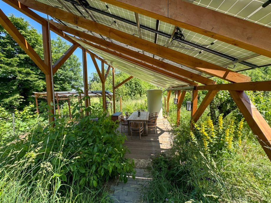 Somit erreichen wir eine Energieautarkie von 75 Prozent. Zudem nutzen wir über eine Zisterne das Regenwasser für die Bewässerung unseres Gartens.