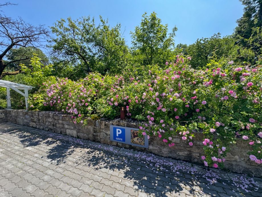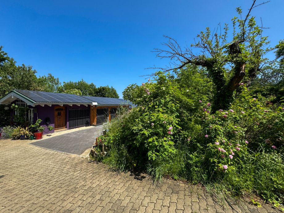 Gern können Sie Ihre Fahrräder in einem am Haus liegenden Schuppen unterbringen oder ein E-Bike bei uns mieten. Ihr Fahrzeug steht auf einem Parkplatz vor dem Haus und kann auf Wunsch an einer Wallbox geladen werden.